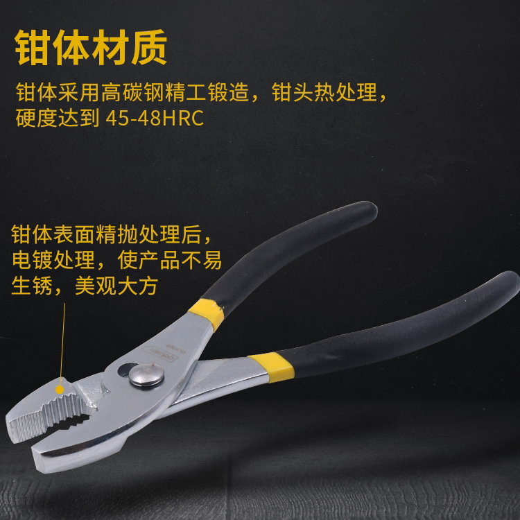鯉魚鉗鉗體采用高碳鋼精工鍛造,鉗頭熱處理,硬度達到45-48HRC