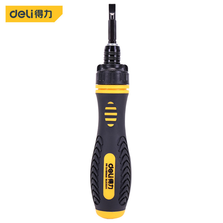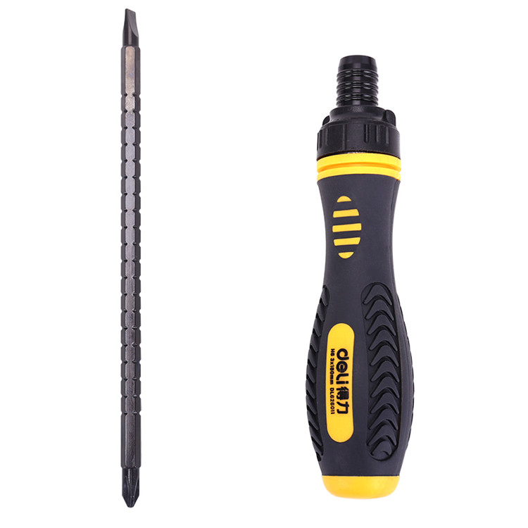 得力棘輪兩用螺絲批可互換批頭,批桿工作長度可調,滿足不同工作場景的需求