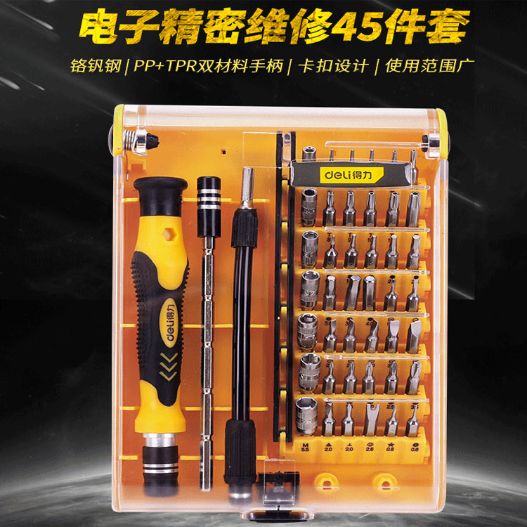 得力螺絲刀套裝小批頭十字梅花家用多功能手機(jī)維修工具組套45件套