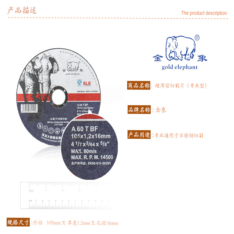 珠海大象超薄切割片專業適用于不銹鋼切割。