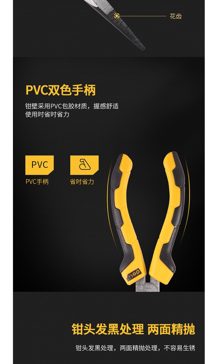 6/8寸家用尖嘴鉗采用55#高碳鋼精工鍛造,鉗頭發(fā)黑處理,兩面精拋