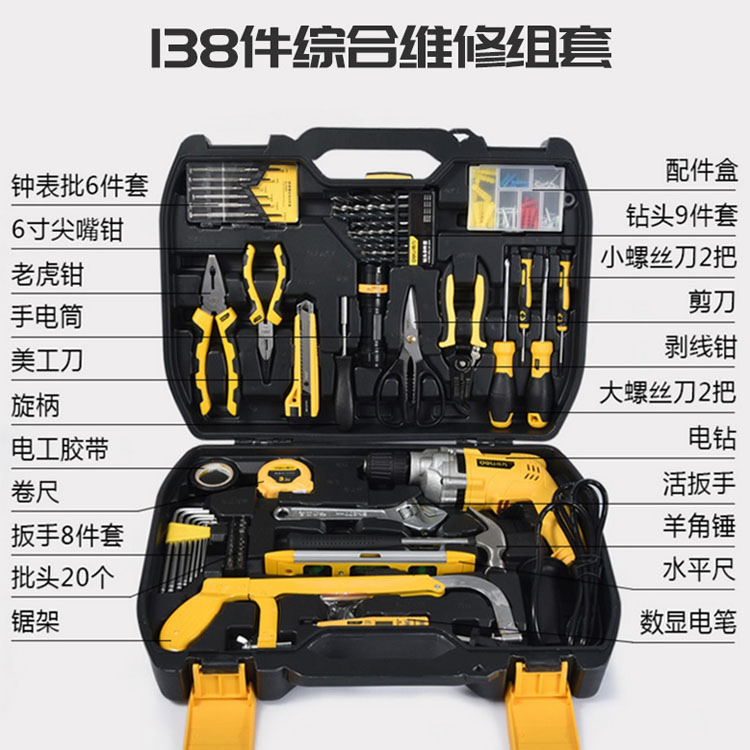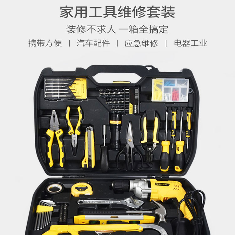 得力多功能家用工具箱五金工具電工手動綜合維修組套電鉆套裝