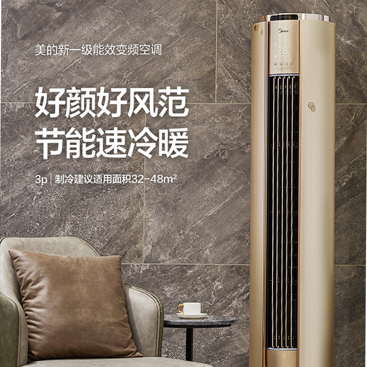 美的3匹圓柱空調(diào)柜機金屬面板,奢華氣質(zhì),別具格調(diào)。