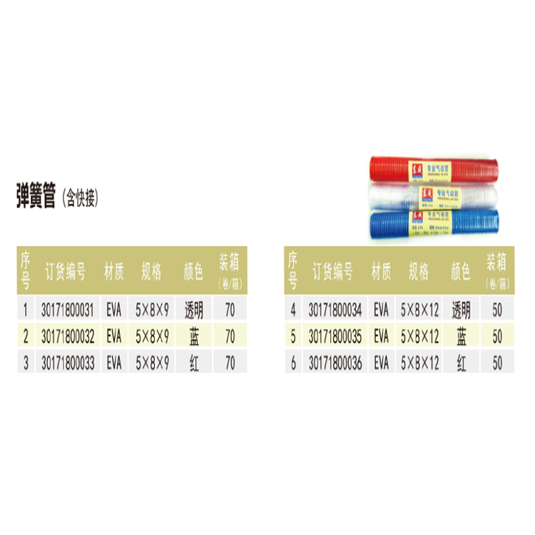 東成彈簧管(含快接)管體光滑柔韌,顏色鮮艷,彈性高,耐繞曲
