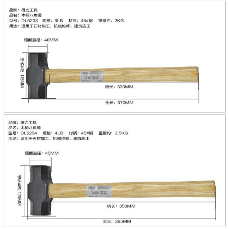 得力五金工具木柄八角錘 方錘 敲墻錘促銷八磅錘DL5203 DL5204