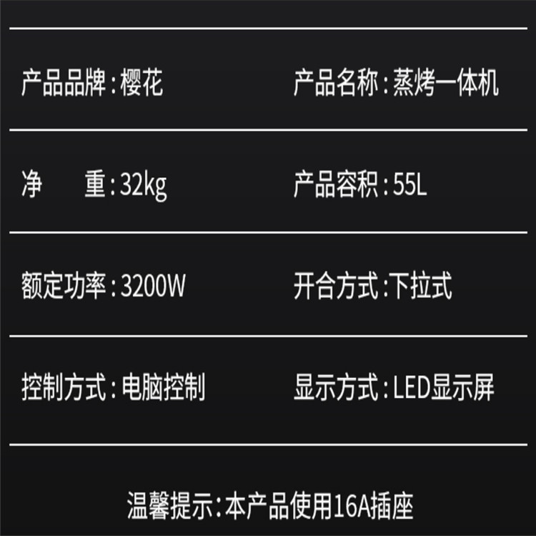 櫻花SCE-55CA01蒸烤一體機蒸烤箱嵌入式蒸烤箱大容量蒸箱烤箱三合一產品參數