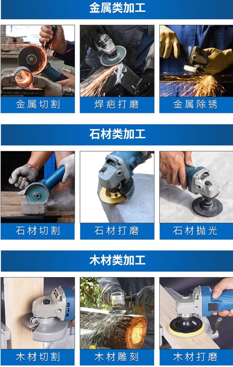 適用于打磨石材、金屬、木材,選用不同的耗材用于不同的作用用途