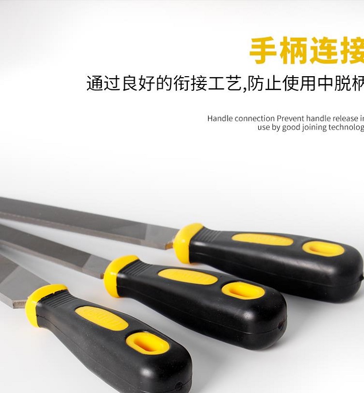 得力扁銼中齒雙色粘塑手柄,手感舒適,防滑耐油