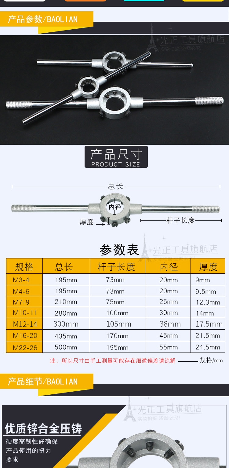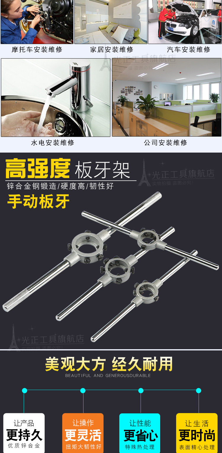 板牙鉸手高強(qiáng)度板牙架,鋅合金鋼鍛造,硬度高,韌性好