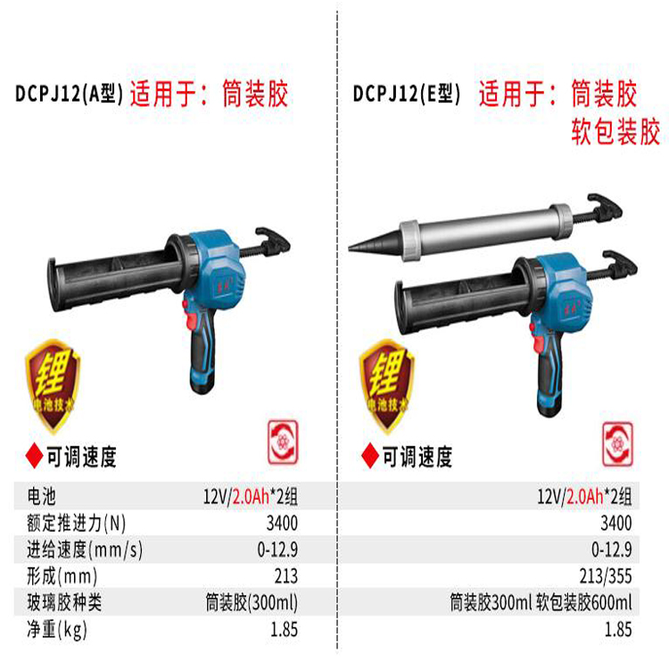 東成充電式打膠槍DCPJ12(A型)/DCPJ12(E型)參數