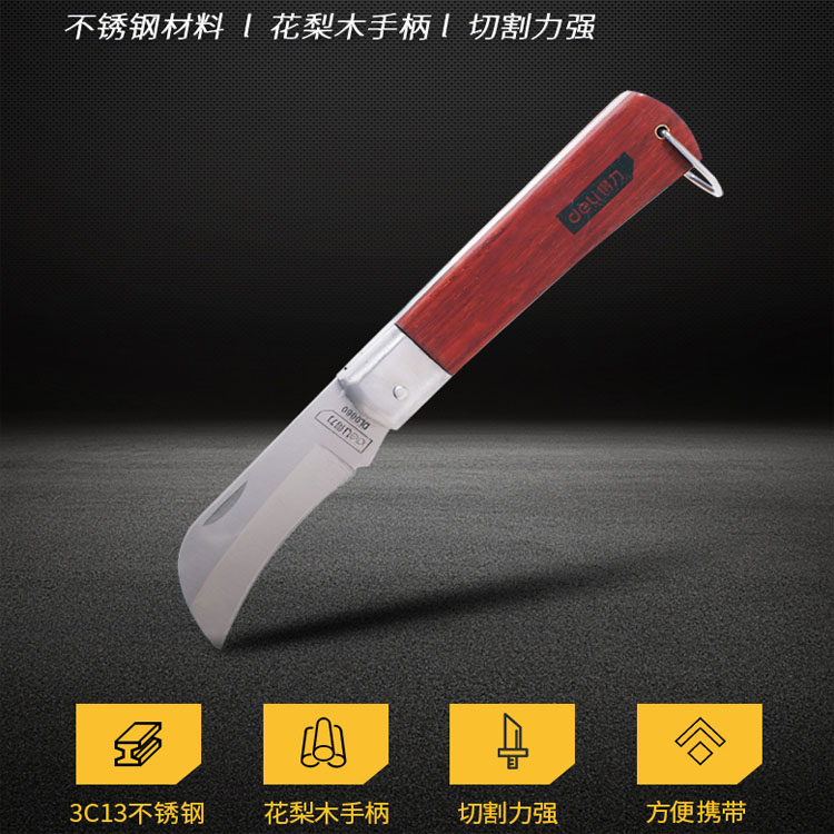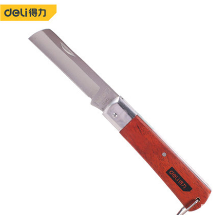得力工具直嘴電工刀彎嘴電工刀木柄絕緣電線刀剝皮刀不銹鋼折疊刀