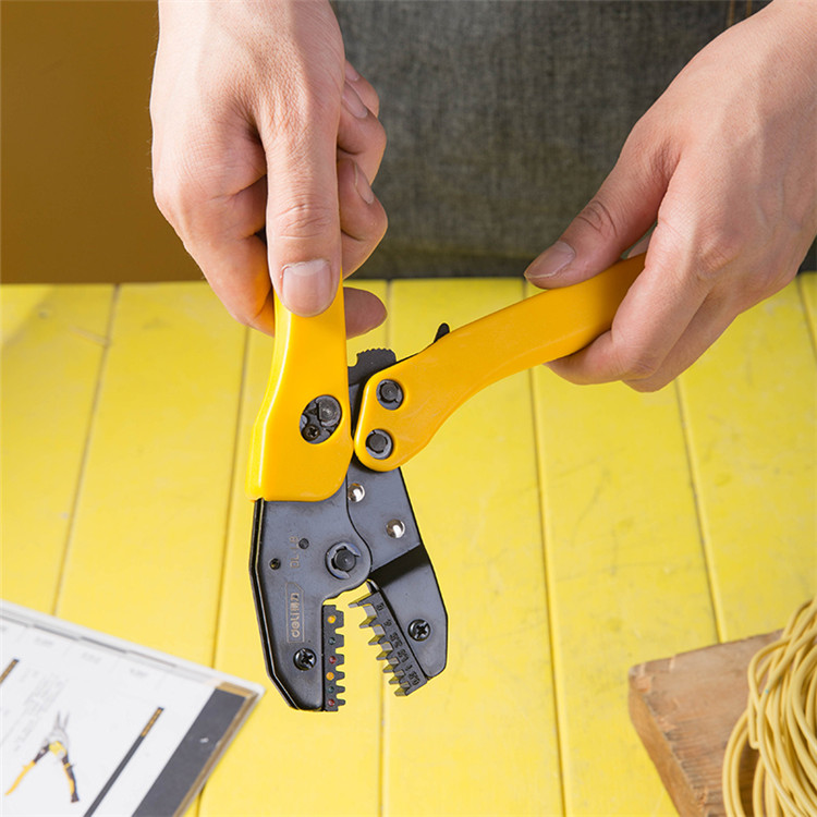 得力冷壓鉗多功能棘輪壓接鉗精密預絕緣裸端子電工夾線壓線鉗工具