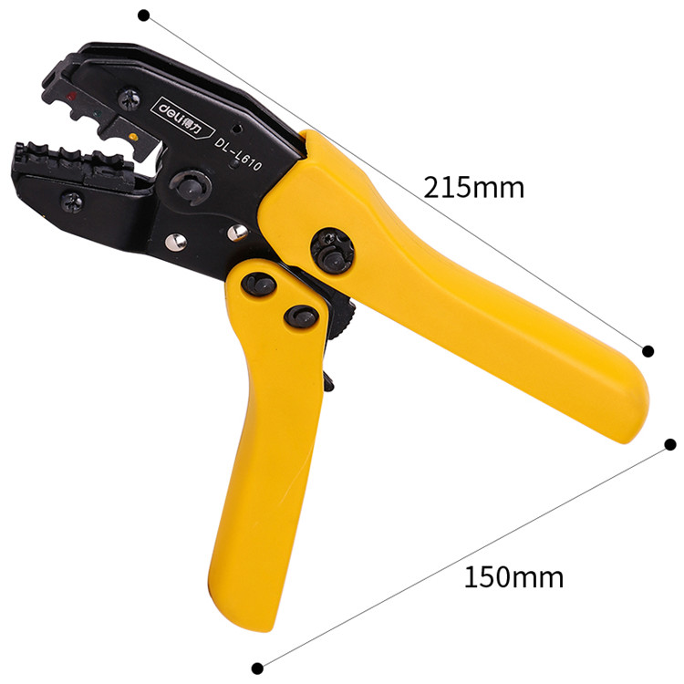 得力冷壓鉗DL-L610壓線鉗冷壓端子電工多功能棘輪壓接針管型接線帶檐絕緣接線