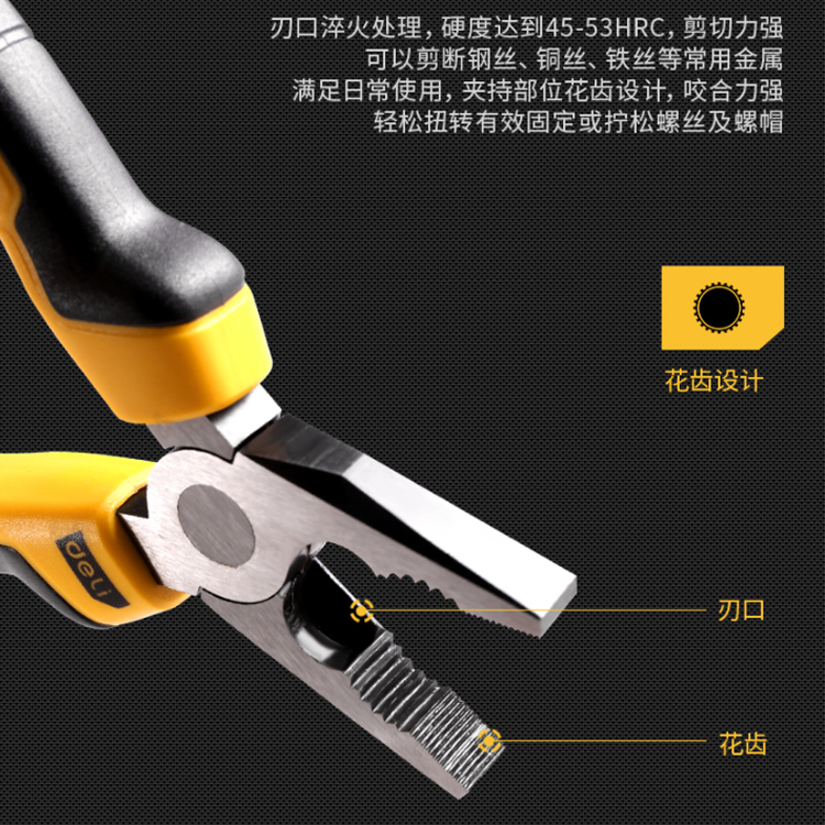 得力高碳鋼老虎鉗電工鋼絲鉗工業級斷線平口鉗多功能鉗子6英寸