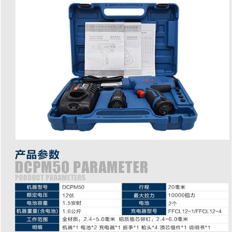 東成充電式抽芯鉚釘槍DCPM50(E型)產品參數