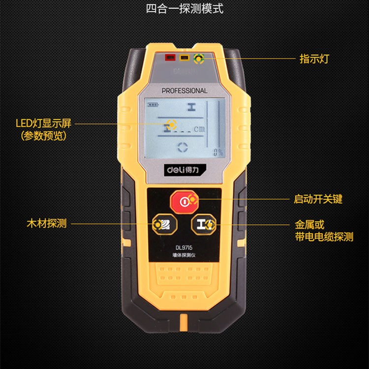 得力多功能墻體探測儀金屬探測器距離測量