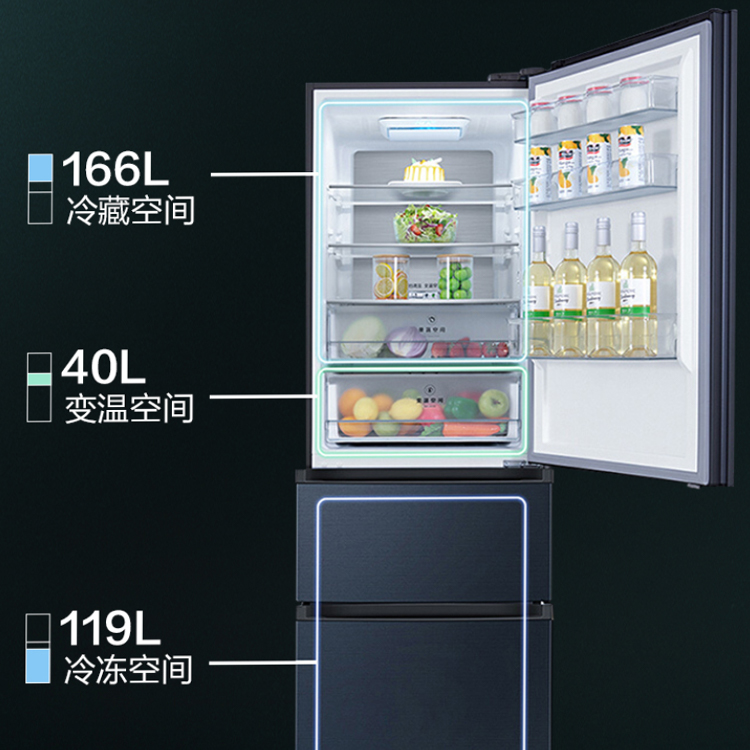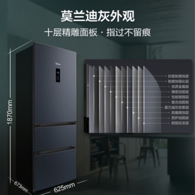 美的雙變頻智能家用電冰箱無需手動清潔,避免二次污染。