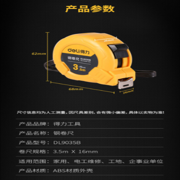 得力(deli) 3.5米鋼卷尺盒尺伸縮尺米尺公制3.5m*16mm DL9035B