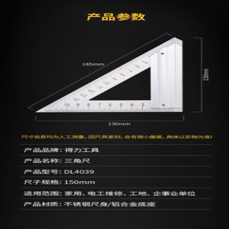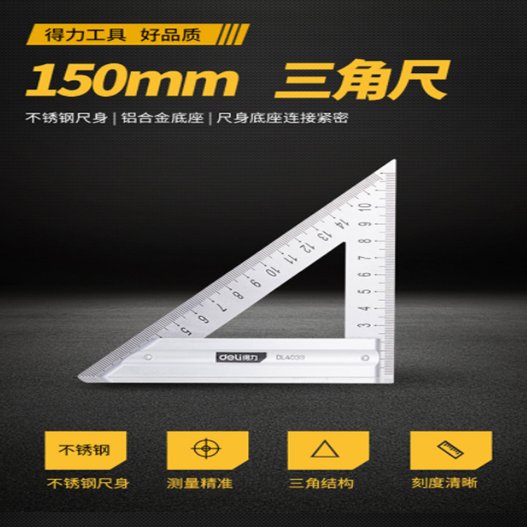 得力(deli) 不銹鋼三角尺直角尺木工鋼板尺加厚45度鋼板尺150mm DL4039