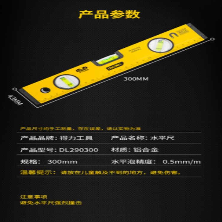 得力(deli) 強(qiáng)磁多角度水平尺鋁合金水平測量尺水平儀300mm DL290300