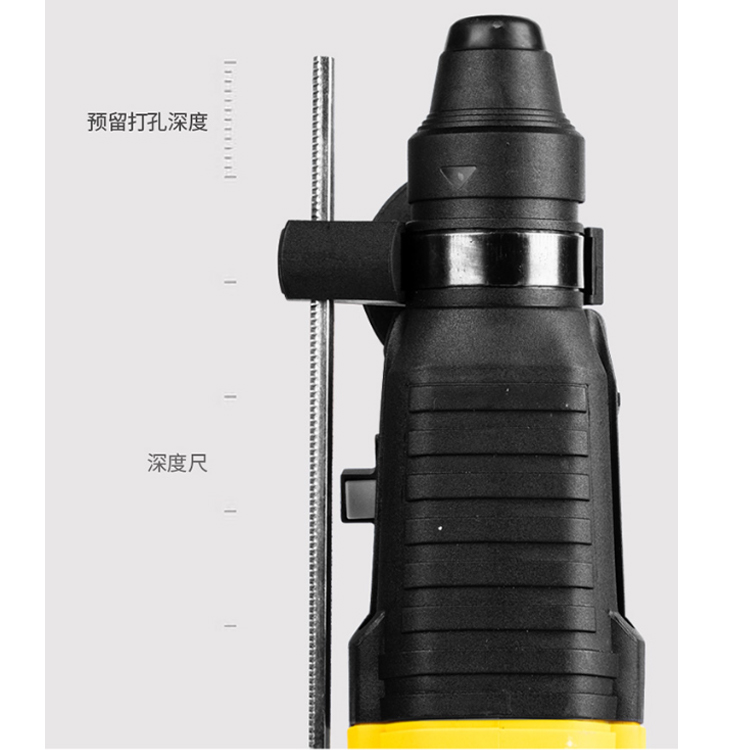 得力(deli) 輕電錘沖擊鉆深度尺預(yù)調(diào)打孔深度,避免打孔過深或打穿墻壁。