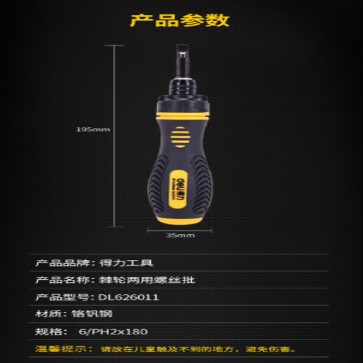 得力(deli) 棘輪可伸縮兩用螺絲刀十字一字兩用起子多功能改錐防滑批頭 DL626011