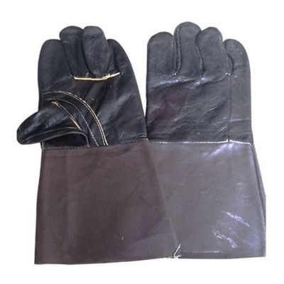 牛盾頭層牛皮全皮長電焊手套深色產品展示