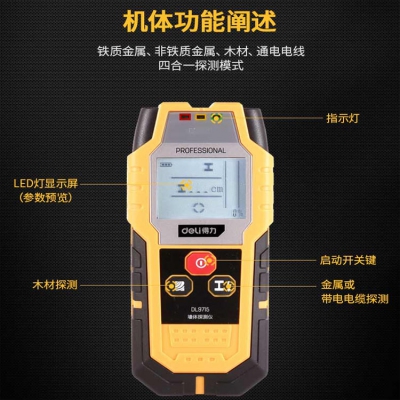 得力多功能墻壁墻體探測(cè)儀墻內(nèi)測(cè)鋼筋電線木龍骨金屬檢測(cè)器