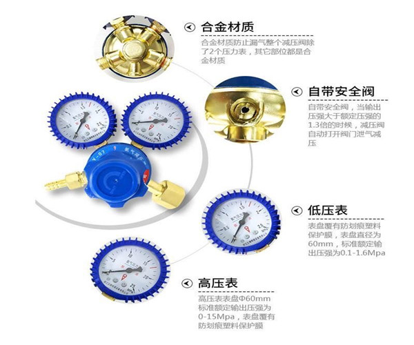 五湖氧氣減壓表氣體減壓器合金鍛造閥體,結構緊湊,合金鍛造抗壓好,耐用