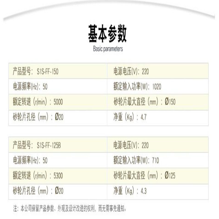 東成直向砂輪機S1S-FF-125B/S1S-FF-150產品參數