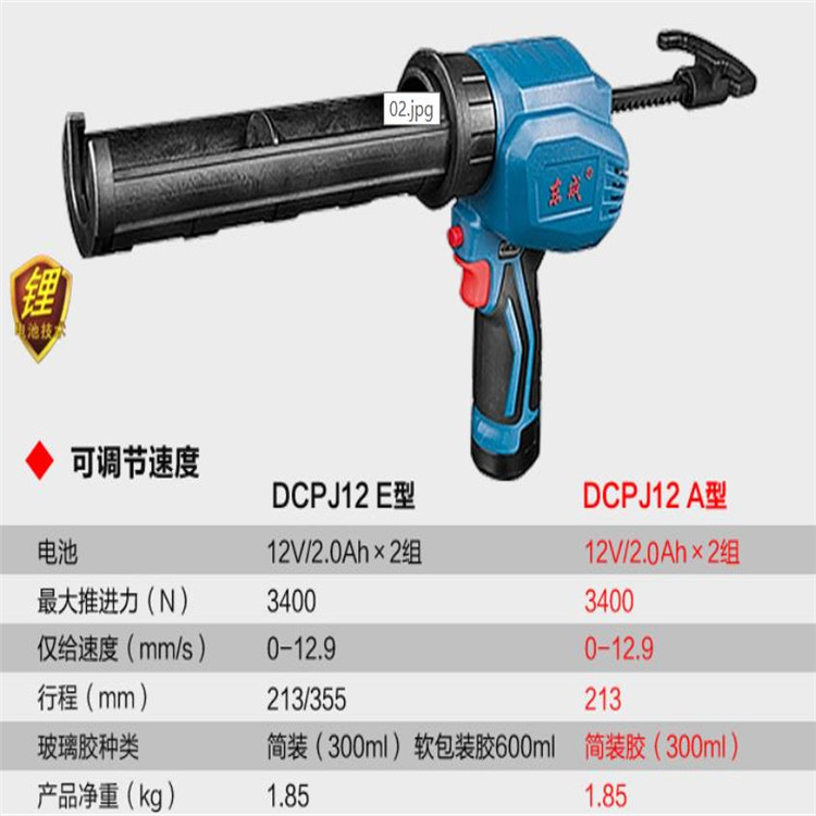 東成充電式打膠槍DCPJ12電動硅膠槍玻璃膠槍膠臘腸軟膠壓膠槍東城