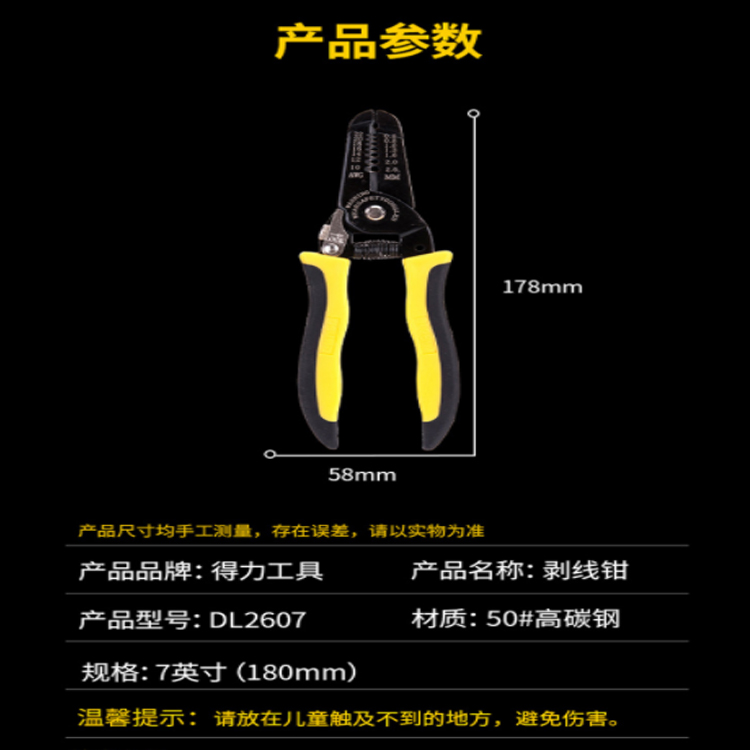 得力(deli) 高碳鋼帶刃口7檔多功能輕便電工剝線鉗電子電工手動工具0.6-2.6mm DL2607