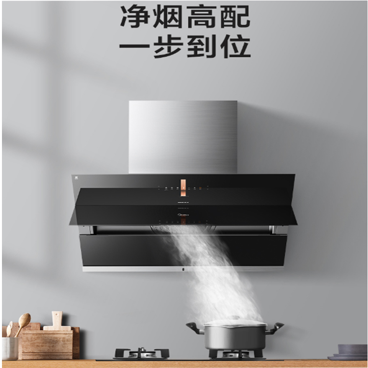 美的智控油煙機(jī)揮手即開(kāi),迅猛大吸力,強(qiáng)抽油煙。