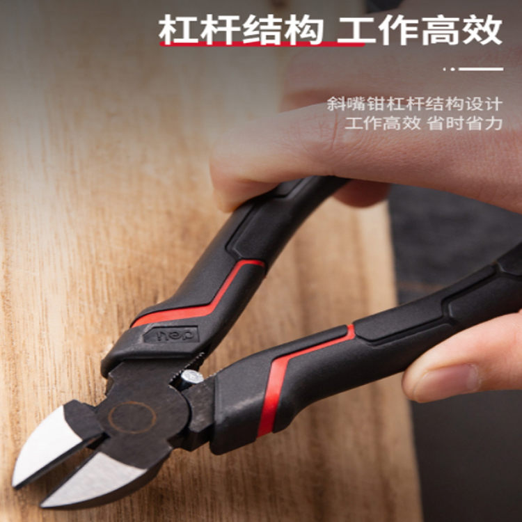 斜嘴鉗桿結構設計,工作高效,省時省力,TPR雙色手柄,握感舒適,耐磨防滑
