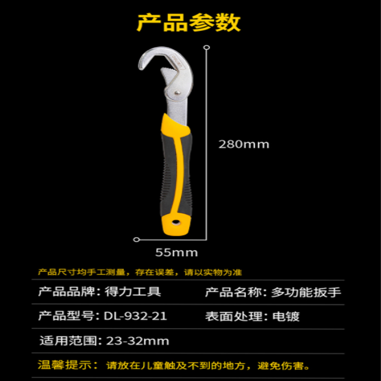 得力(deli) 多功能扳手快速水管鉗活動多功能管鉗扳手多用途活動扳子23-32mm