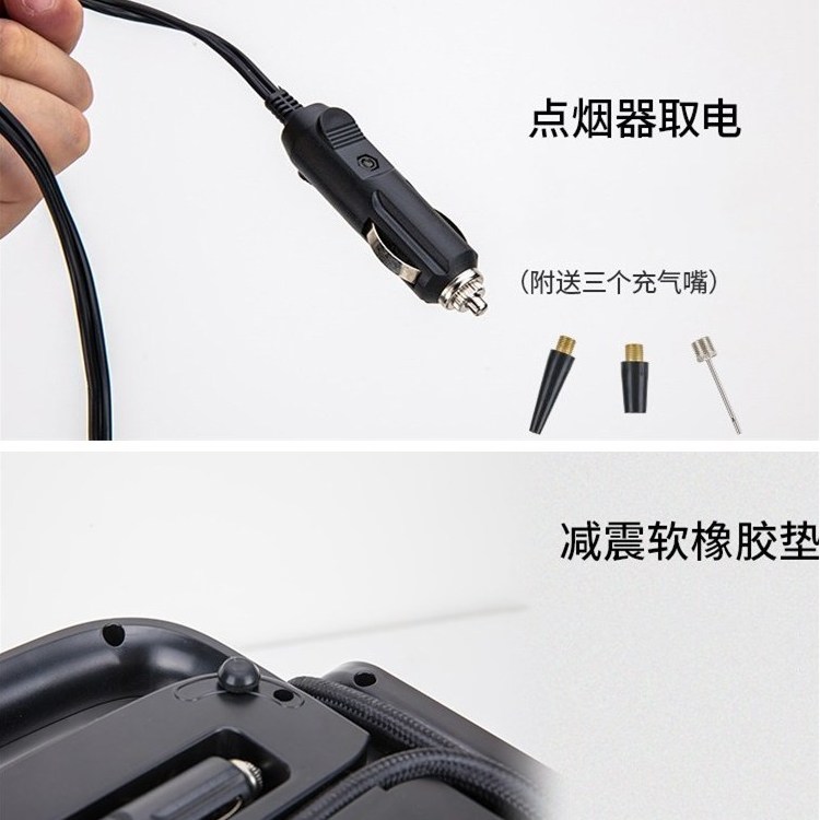 車載充氣泵藍色熒光顯示屏,提手設計,方便攜帶。