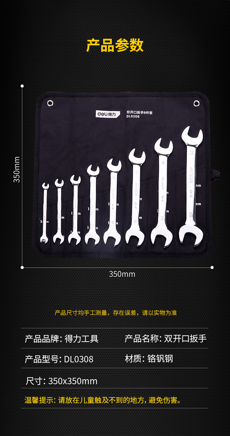 得力鏡面拋光兩用雙開口扳手套裝雙呆頭扳手汽修五金工具兩頭板子