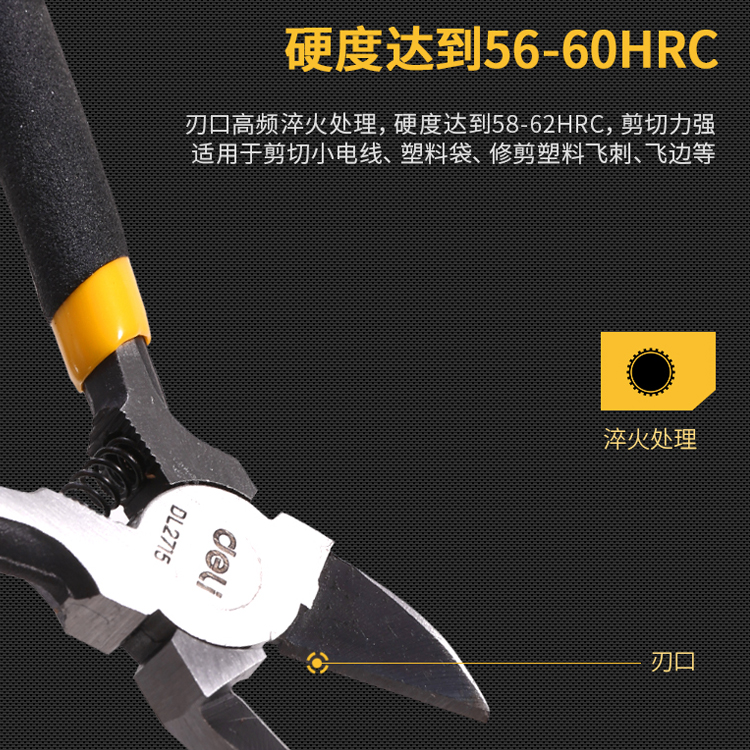 水口鉗刃口高頻淬火,硬度達到56-60HRC,剪切力強;