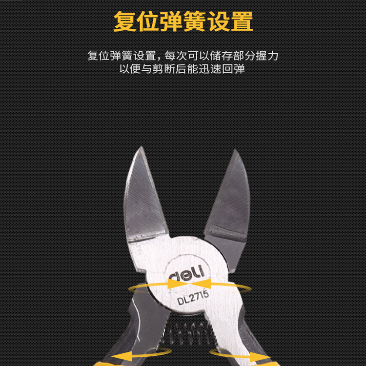 水口鉗復位彈簧設計,每次儲存部分握力以便于剪斷后能迅速彈回