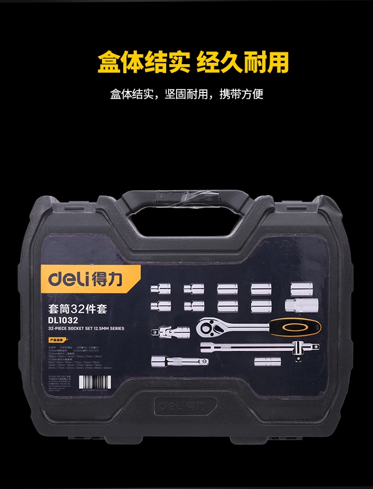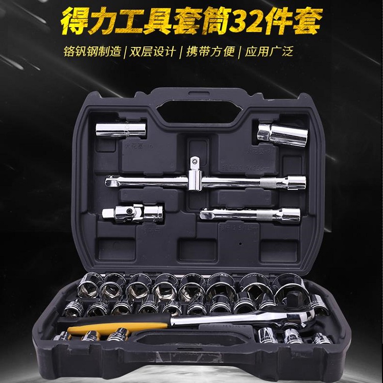 得力工具32件套筒組套汽車維修機修工具加長組套五金工具箱