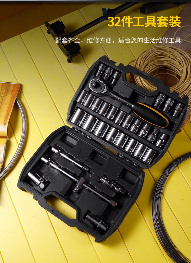 32件工具套裝配套齊全,維修方便