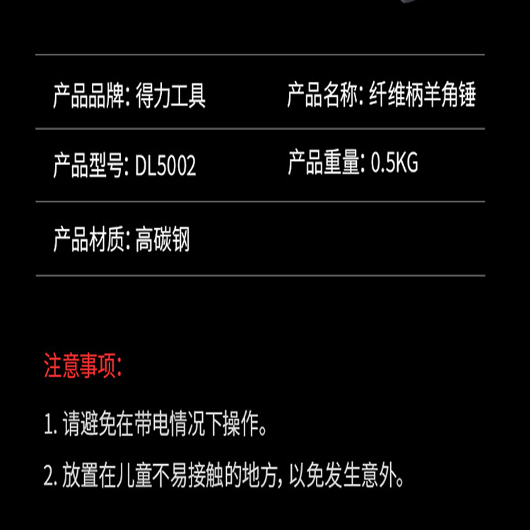 得力(deli) 纖維柄羊角錘鐵錘子多用起釘錘鐵榔頭16oz DL5002