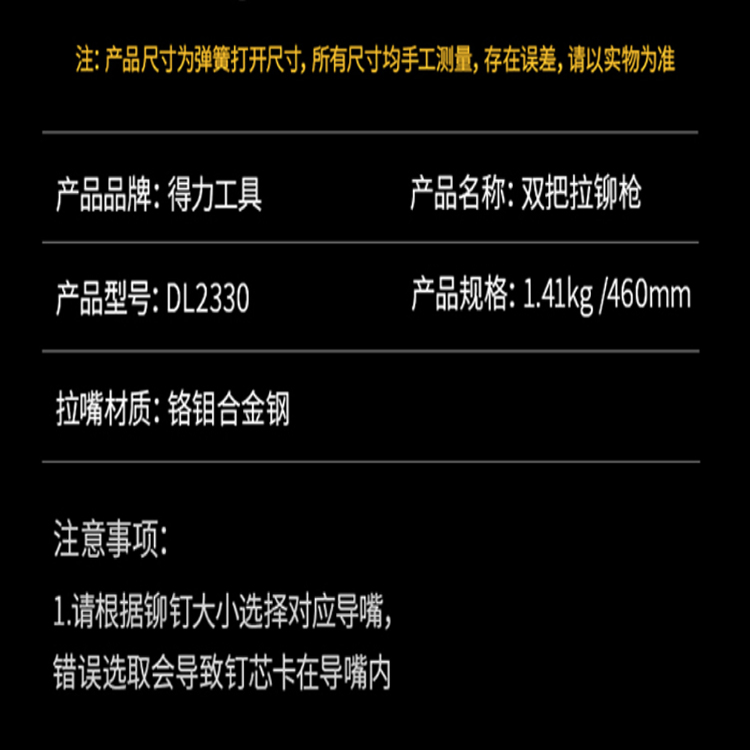 得力(deli) 拉桿雙把手動省力拉鉚槍鉚釘槍手動抽芯槍460mm DL2330