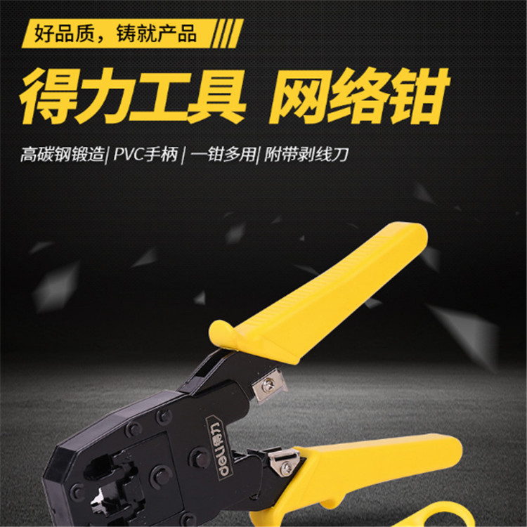 得力網絡鉗水晶頭接頭鉗產品集剪線,剝線,壓線于一身,使用方便。