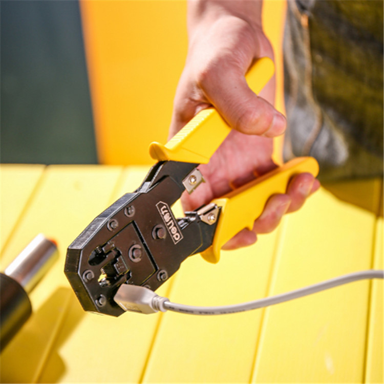 得力網絡鉗水晶頭接頭鉗注塑手柄,握感舒適。