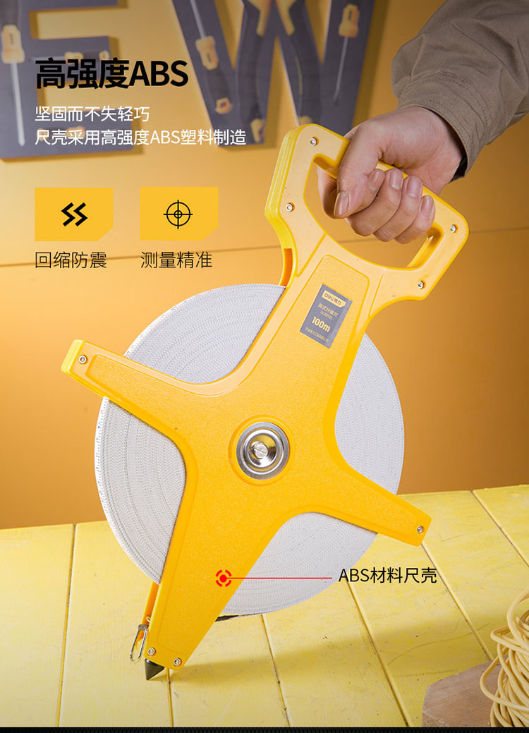 100m尺帶|手柄舒適|快速收縮尺帶|ABS材質(zhì)尺架