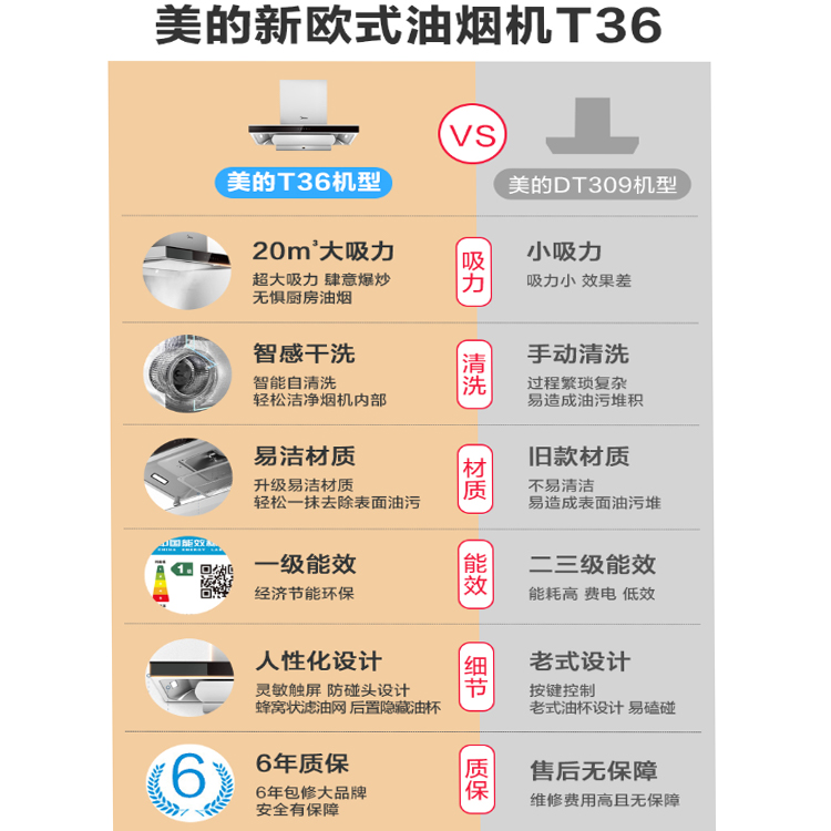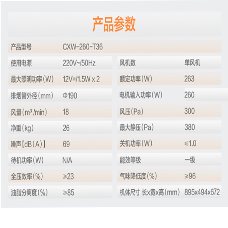 美的家用歐式油煙機表面采用易潔材質,一抹即凈。- 型號名稱CXW-260-T36