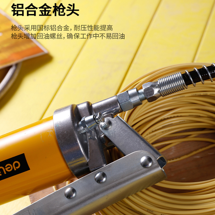 黃油槍鋁合金槍頭、回油螺旋設計、包膠手柄