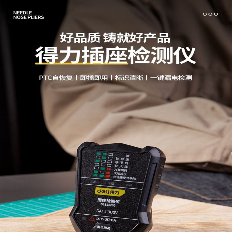 得力工具插座相位檢測儀電源極性測電器驗電器漏電測試儀試電插頭
