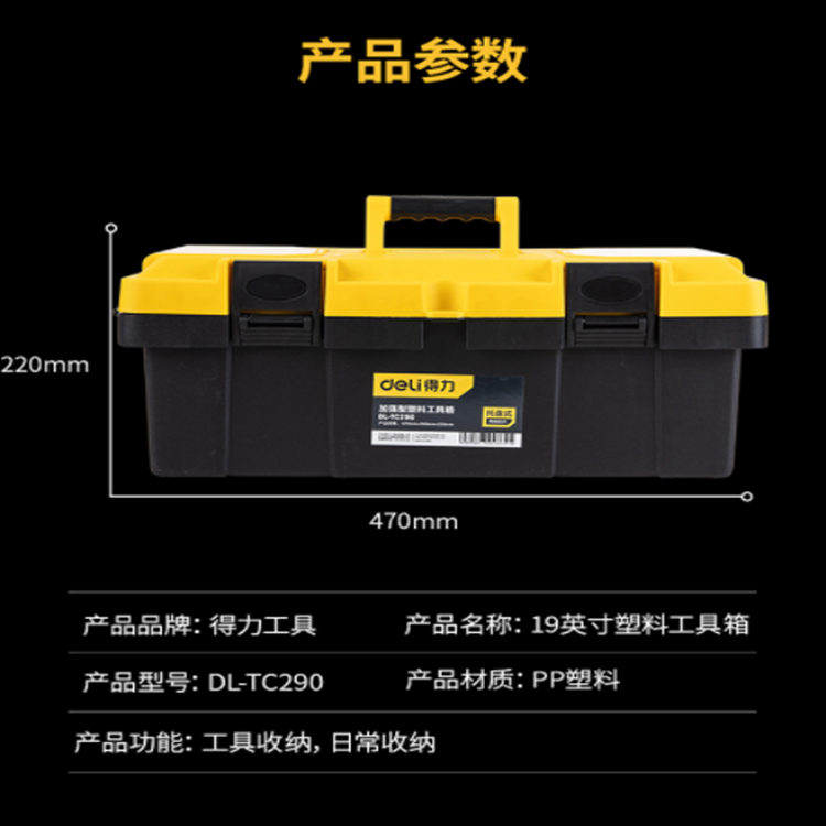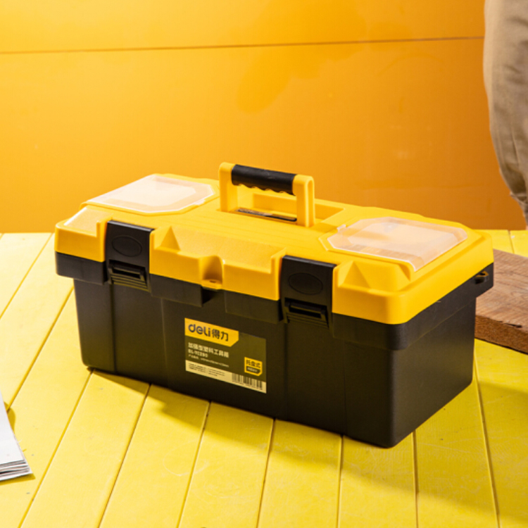 得力(deli) 加厚型工具箱PP塑料收納箱 車載多功能維修工具盒家用五金收納盒19英